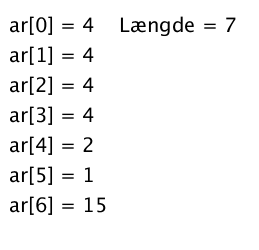 Eksempel til at illustrere hvordan array bruges