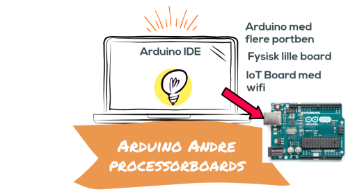 I de følgende to afsnit, præsenteres et udvalg af processorboards, der alle kan programmeres via Arduino IDE. Opdelingen er foretaget i henholdsvis #Almindelige processorboards og #IoT relaterede processorboards.